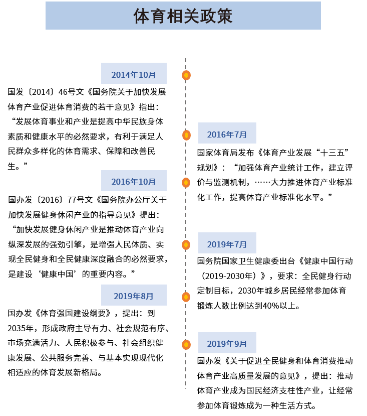 近年来,随着我国经济的快速发展,体育事业和产业蓬勃发展,全民健身意识逐步提高。国家体育总局高度重视体育产业发展,陆续出台了一系列促进体育产业和体育强国建设的相关政策,推动体育产业成为国民经济支柱性产业;逐步完善全民健身基本公共服务体系,让经常参加体育锻炼成为一种生活方式。