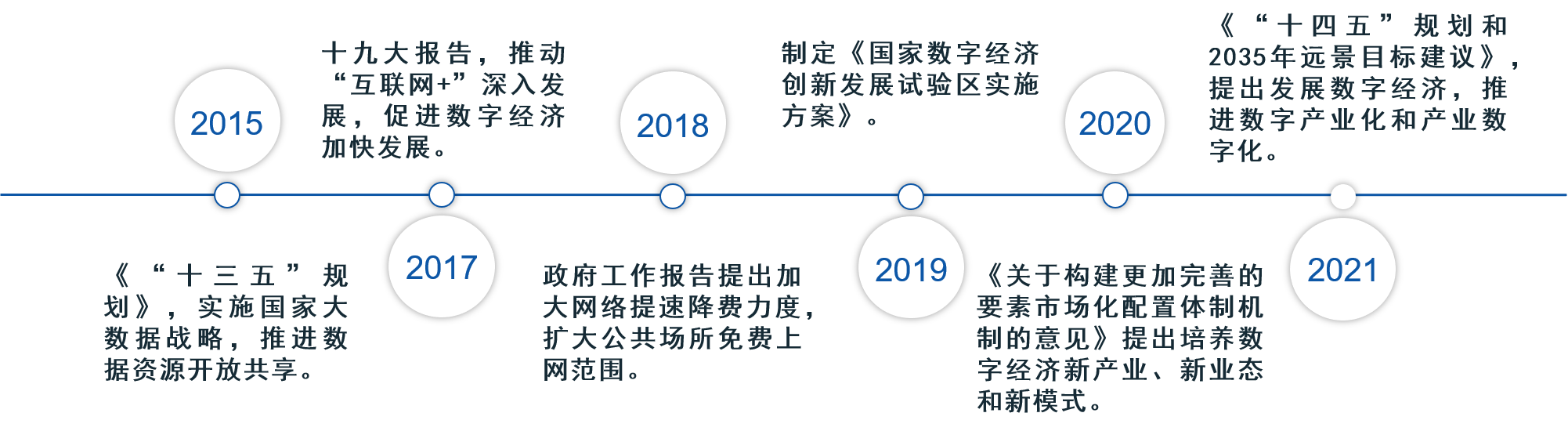 ​自2015年我国提出“国家大数据战略”以来,我国数字经济快速发展,2019年数字经济增加值为35.8万亿元,占GDP的比重提升到36.2%,对经济增长贡献率高达67.7%。“十四五”规划及2035远景目标建议强调了加快发展数字经济,推动数字产业化和产业数字化,推动数字经济和实体经济深度融合,打造具有国际竞争力的数字产业集群。